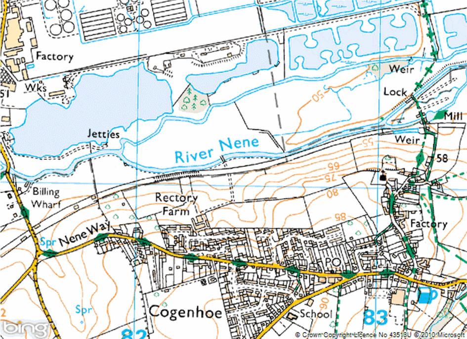 The fishery consists of the left bank of the River Nene from Billing Bridge for one field downstream, the right bank from downstream of the boatyard at Billing Bridge to the island at Cogenhoe Mill. The left and right banks of the island. Note: Earls Barton AC hold the fishing rights to the opposite bank from the point where the river splits around the island at Cogenhoe Mill.