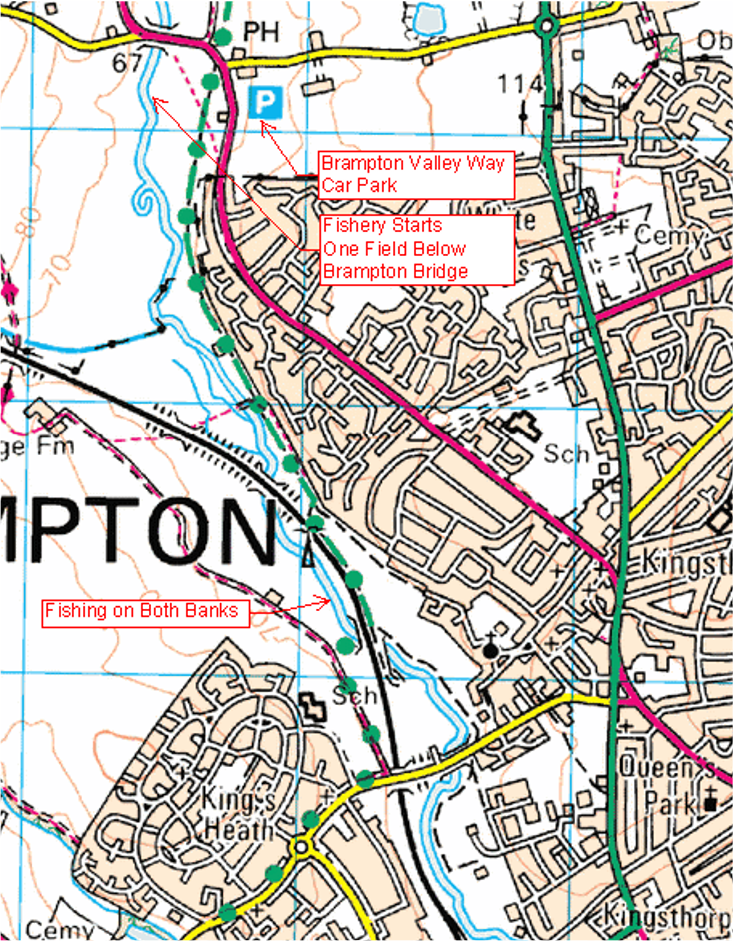 The Brampton Arm fishery starts one field below the bridge on the A5199 Northampton Road, to one field above Spencer Road Bridge in Northampton. Fishing is permitted on both banks.