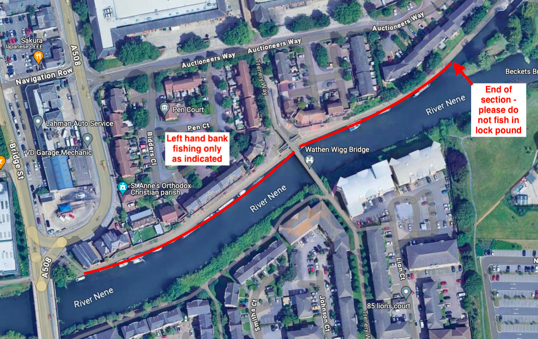 The fishery consists of Left bank fishing starting South Bridge downstream to the Lock Pound