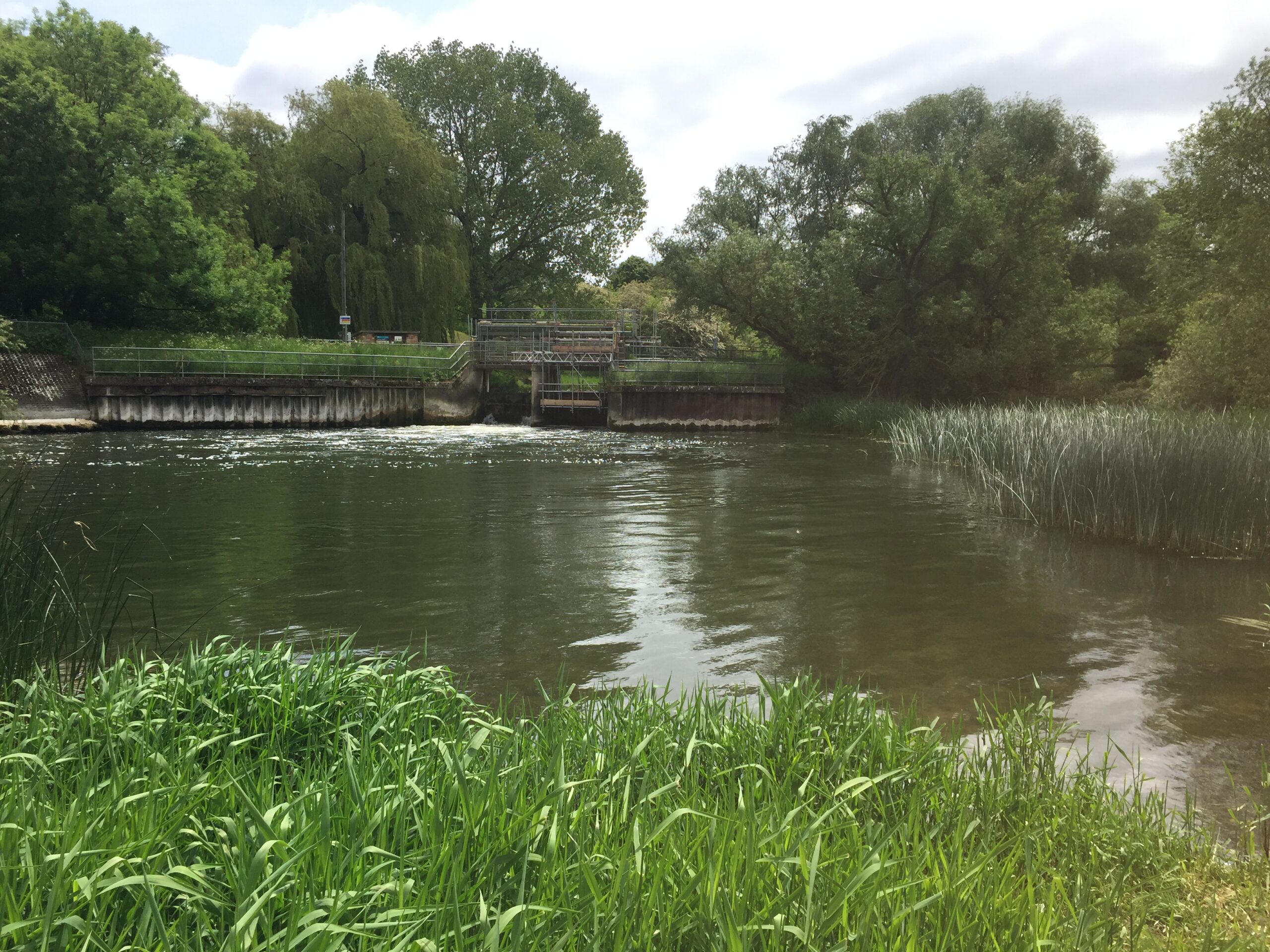 Pedestrian access is through a gate just before the bridge on the opposite side of the road to the lay by on the A428. In order to access the fishery there is a gate code on a combination padlock, the code is available to members in their club book. Please lock the gate behind you, Please follow the footpath to the left that leads along the side of the river to the weir pool. Following the footpath around the back of the weir pool you will come to a gate in front of a footbridge (access is for club members only) which brings you to the river above the sluice gates. The bank to the right takes you along to a gate at the end of this section of the river.